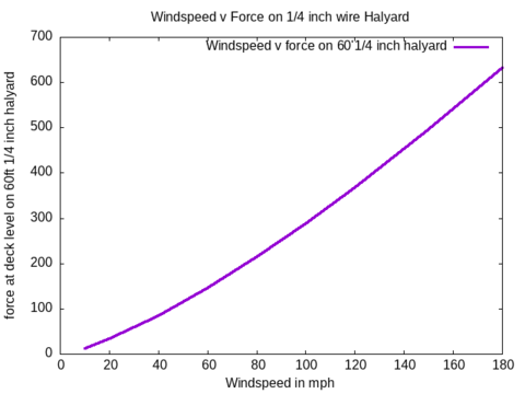 But the vast majority of the boats are stored with their masts in. Wind pressures go up with the square of the velocity. When the wind gusts to 180mph the wind pressure is astronomical: 83lb per sq ft. That means that on a 60ft mast with the wind gusting 180 mph, the load exerted 30ft above the deck is 5,450lb. When the wind is fore and aft, or near to it, this load really does not matter. But with that load on the beam, will the boat stay in the cradle?